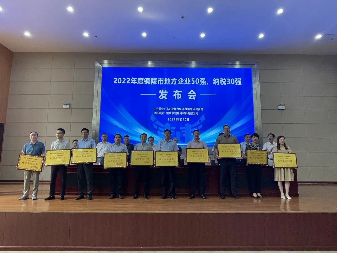 喜訊!國泰建筑榮獲2022年度銅陵市“地方企業(yè)50強”