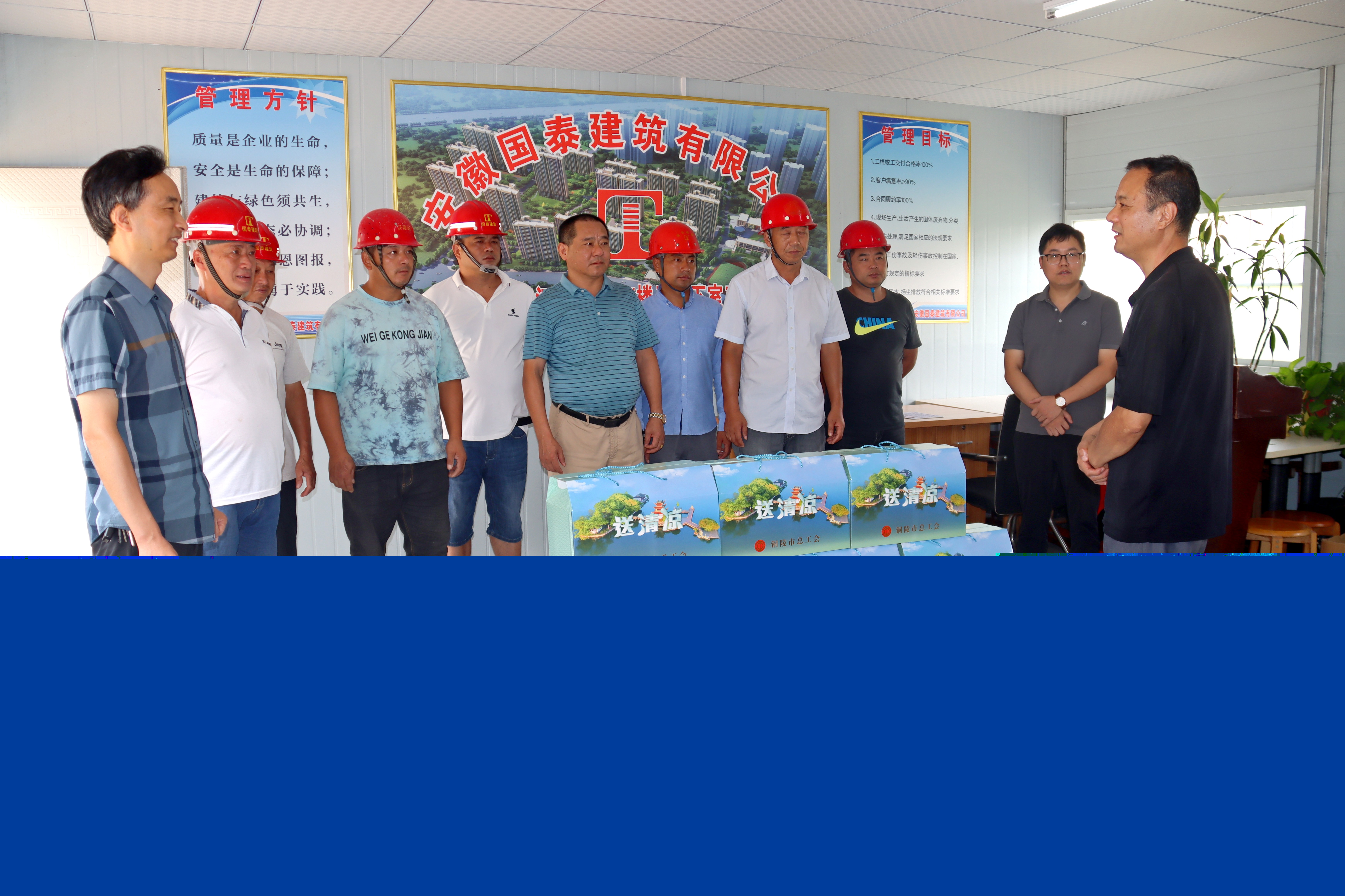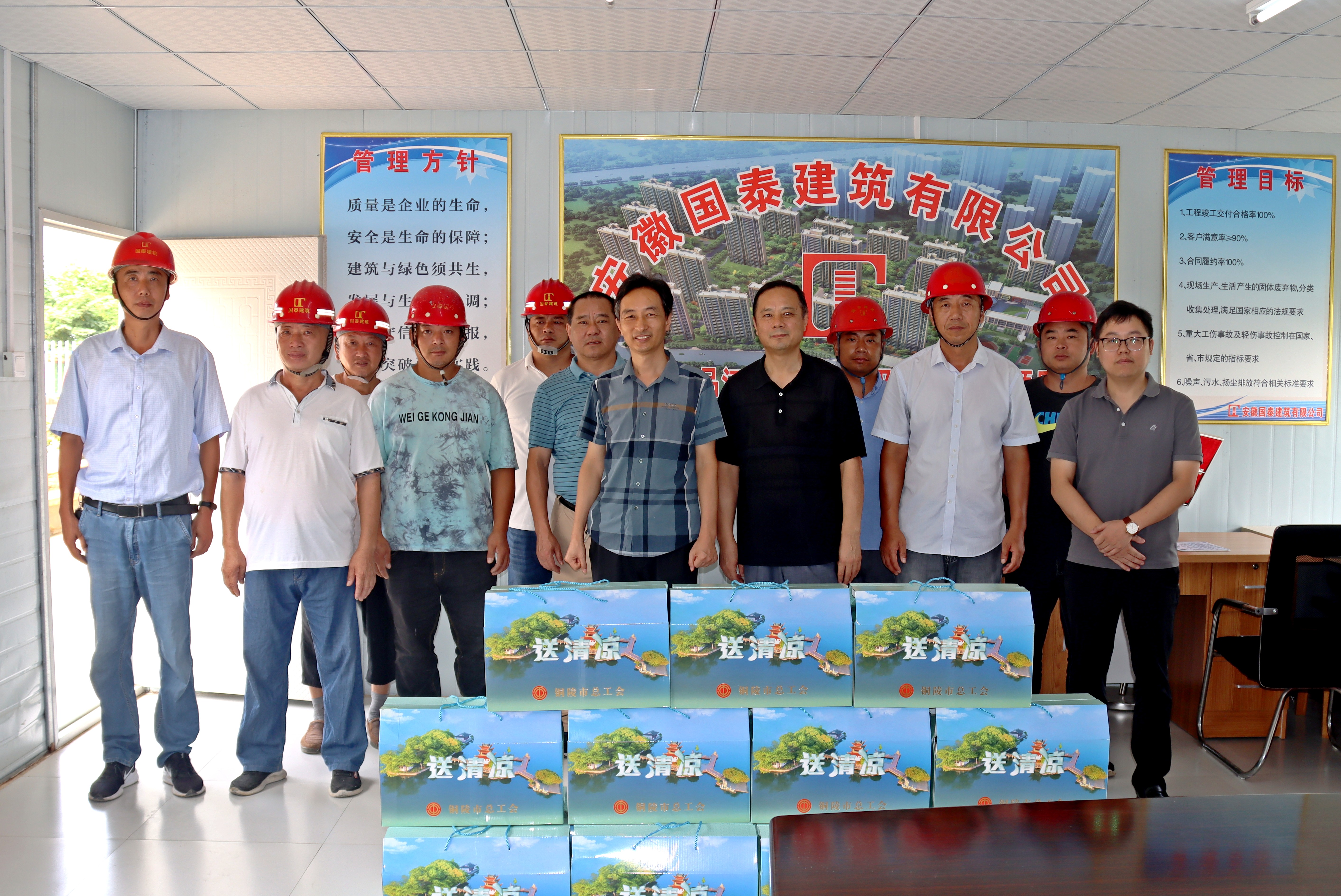 暖心慰問,清涼一夏。8月17日上午,市總工會副主席朱永宏一行慰問國泰建筑一品江山項目,開展高溫送清涼慰問活動,為高溫下堅守一線的勞動者,送上一份清涼和關(guān)心。公司工會主席杜軍云,副總經(jīng)理柏菡林陪同。