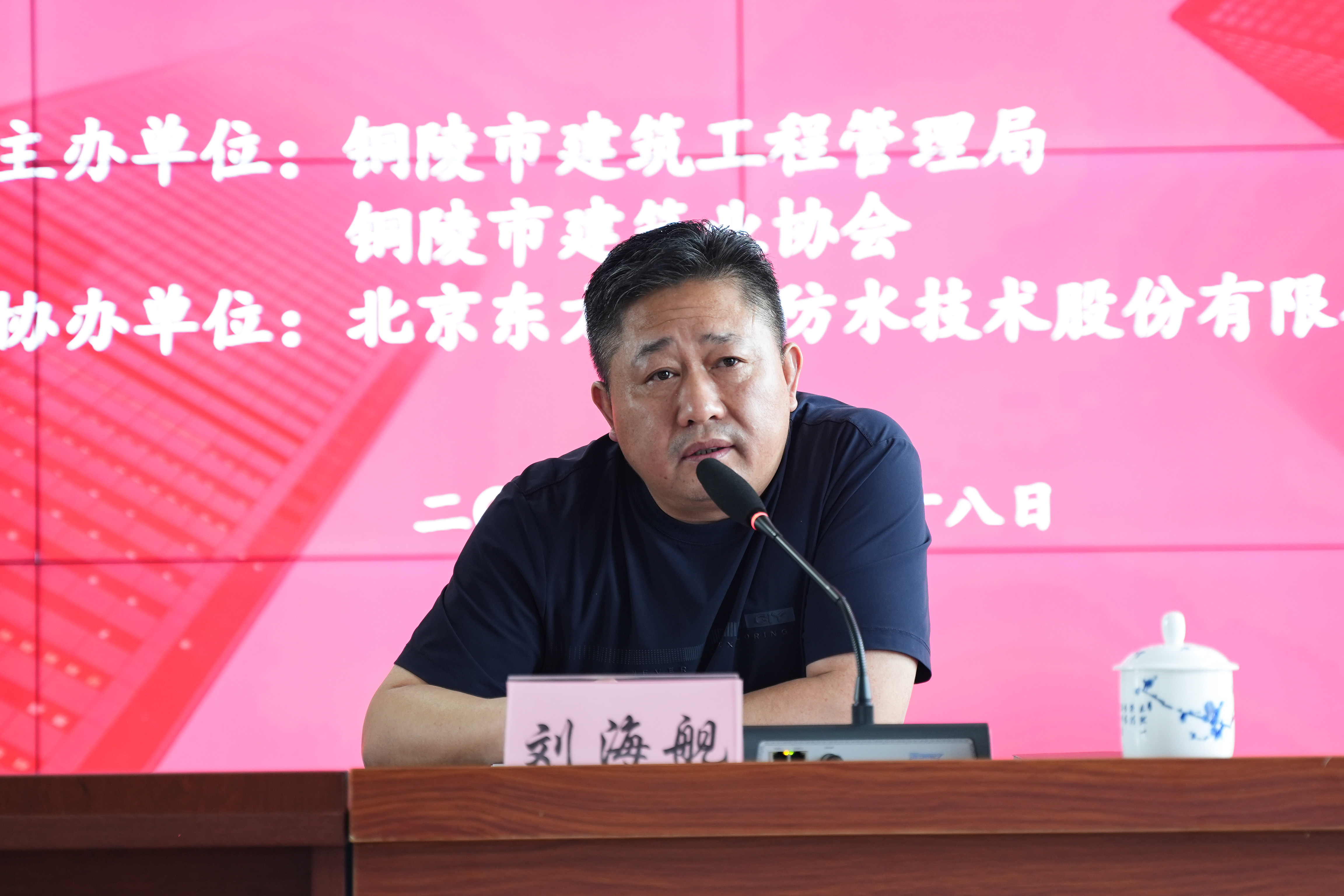公司張四兵總經(jīng)理在培訓前致辭,歡迎各位領導、專家和行業(yè)同仁蒞臨國泰建筑。市建工局劉海艦總工在講話中,從行業(yè)管理和規(guī)范執(zhí)行角度出發(fā),強調(diào)了《建筑與市政工程防水通用規(guī)范》在保障建筑工程質(zhì)量、規(guī)范市場秩序等方面的重要性,并對培訓工作提出要求。