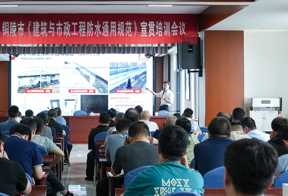 5月28日下午,由市建筑工程管理局和市建筑業(yè)協(xié)會聯(lián)合主辦、北京東方雨虹防水技術股份有限公司協(xié)辦的《建筑與市政工程防水通用規(guī)范》宣貫培訓,在國泰建筑6樓會議室成功舉辦。市建筑工程管理局、市建筑業(yè)協(xié)會相關領導和建筑企業(yè)技術及質(zhì)量管理負責人參加了培訓。此次培訓,為我市政提升建筑與市政工程防水質(zhì)量、推動行業(yè)技術進步注入了新動力。