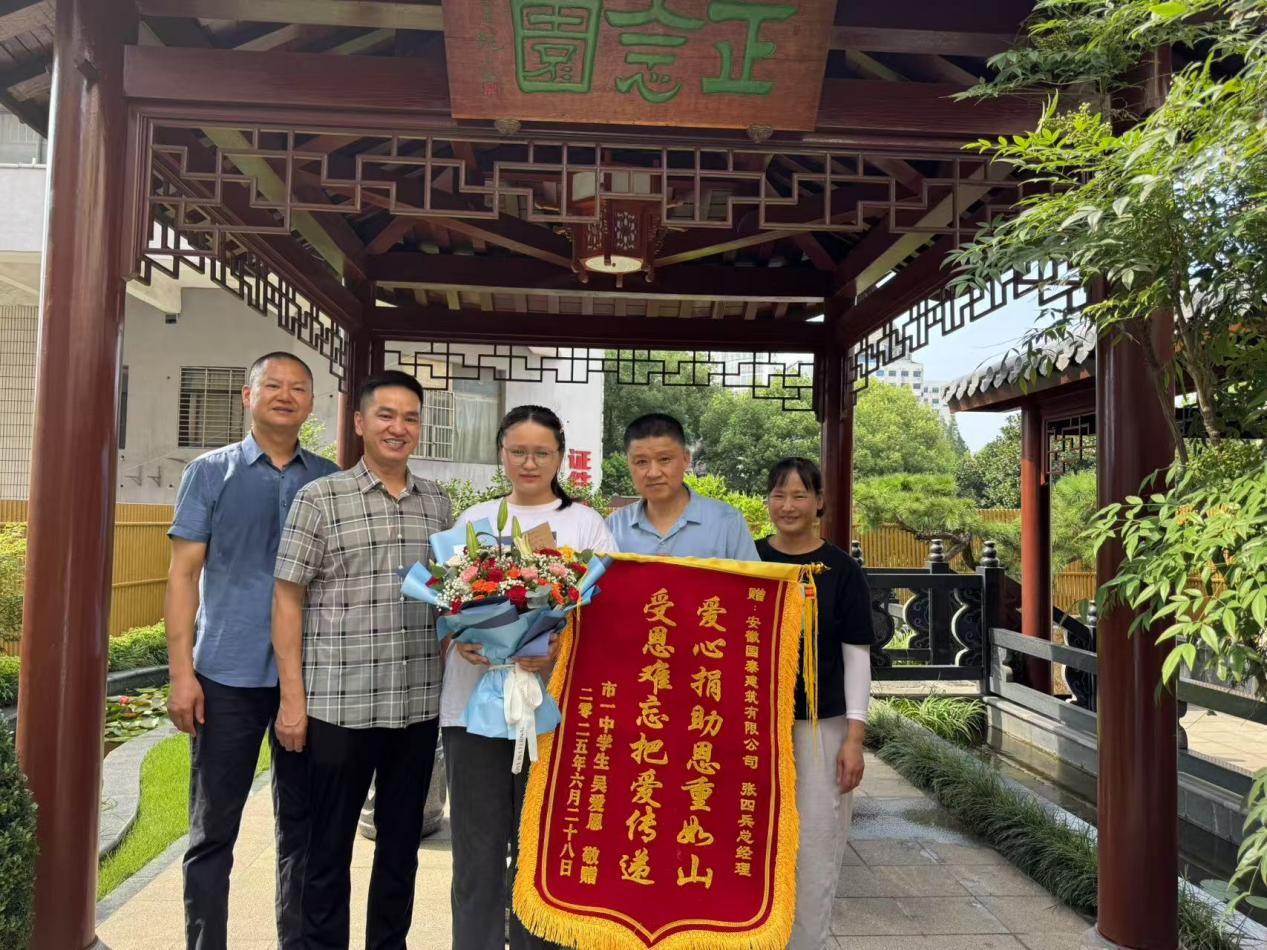 國泰建筑長期踐行慈善事業(yè),在做好企業(yè)的同時積極回報社會。張四兵總對吳愛恩的定向資助,就是這種理念的具體體現(xiàn)。在贈送錦旗現(xiàn)場,公司張自州董事長和張四兵總給吳愛恩送上衷心祝福。張董事長說:“看到你通過努力取得好成績,我們都很欣慰。國泰建筑今后愿意為更多人送去幫助、送去希望?!?/span>