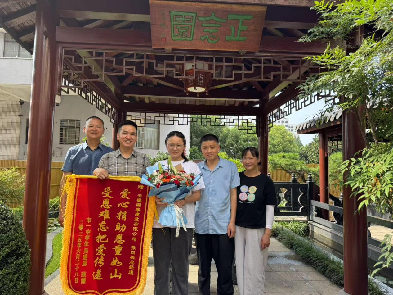 今天,高考考生吳愛恩和父母一道,專程到國泰建筑送來一面錦旗,上面繡著“愛心捐助恩重如山,受恩難忘把愛傳遞”十六個字,表達對公司張四兵總經(jīng)理最真摯的謝意。