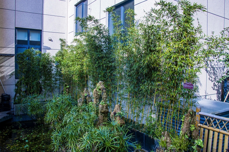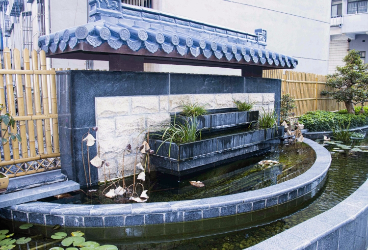360度循環(huán)瑤池,水中點綴著睡蓮、通心草、蒼蒲,構(gòu)建成一個完整的生態(tài)鏈,可謂養(yǎng)魚先養(yǎng)水。養(yǎng)水便得養(yǎng)一口“活水”。變則通,通則達。池水不斷循環(huán)更新,一眼便能望透湖底。魚兒清晰可見,蓮根都歷歷在目。不僅僅與正念園的寓意相契合,同時給人以清風(fēng)正氣之感。