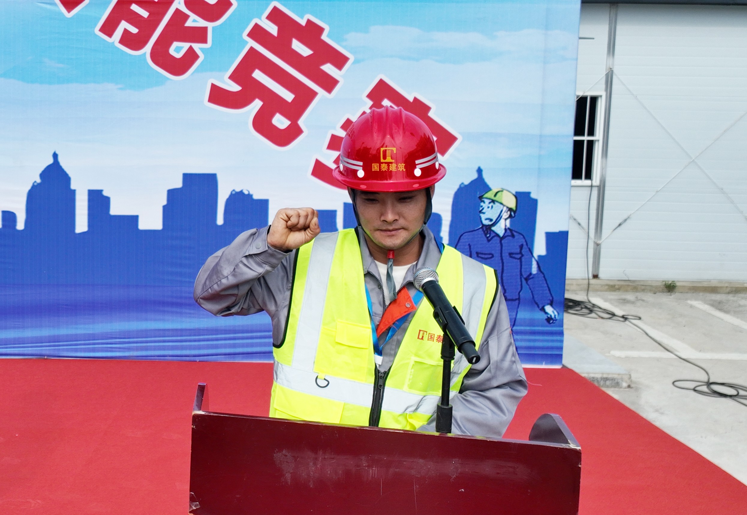 安徽國(guó)泰建筑有限公司防水工徐景云代表參賽選手宣誓,表達(dá)了參賽選手們對(duì)比賽的認(rèn)真態(tài)度和對(duì)技能的熱愛,并表示將全力以赴爭(zhēng)取好成績(jī)。